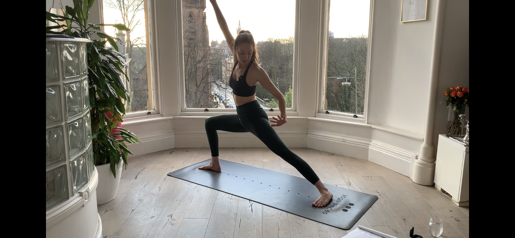 60 mins twisting flow. Expect lots of high lunges, revolved everything and every prop.